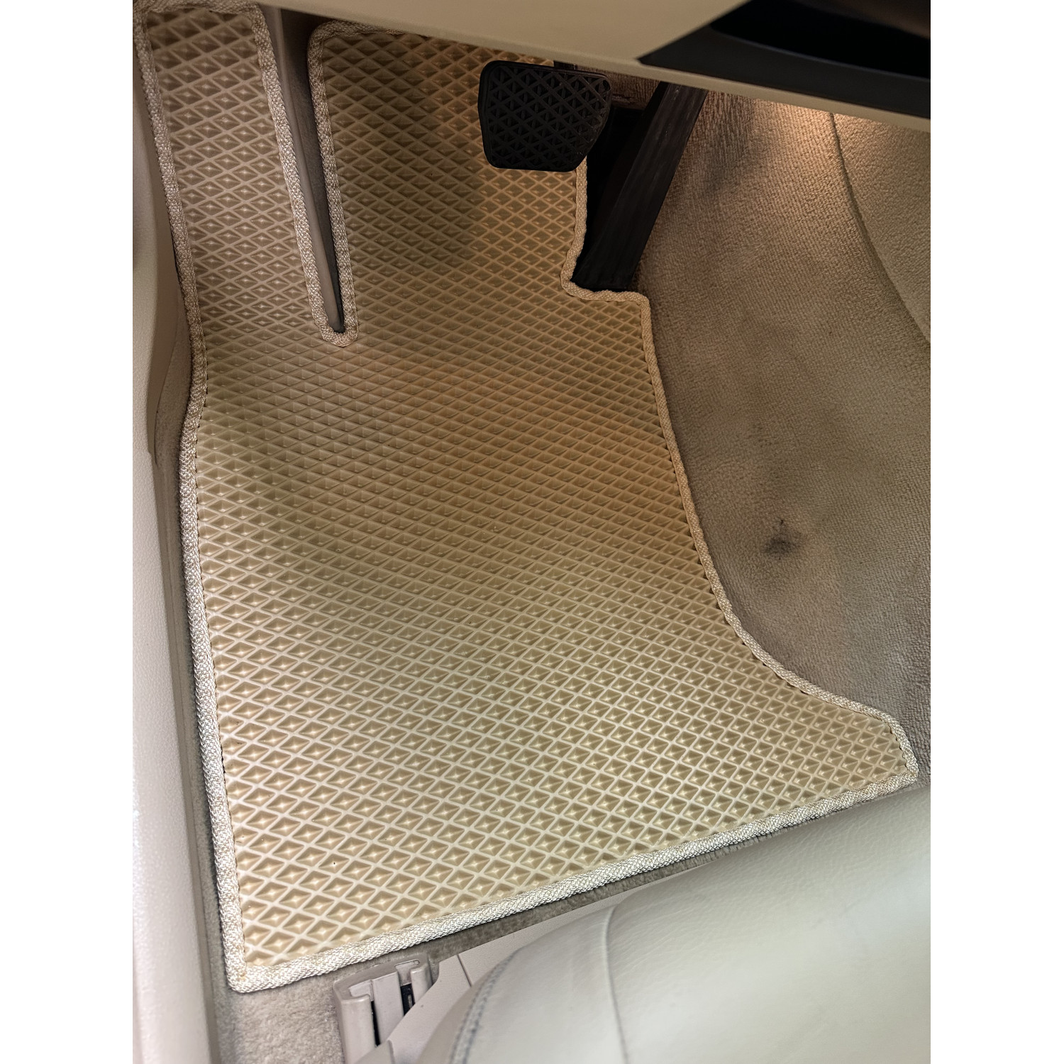 Учитываются все конструктивные особенности вашего салона (наличие тоннеля, количество педалей и т.д.). Благодаря этому исключаются раздражающие факторы, такие как торчащие элементы ковриков, заломы под педалью сцепления, отгибающийся коврик под торпедо со стороны пассажира и прочее.